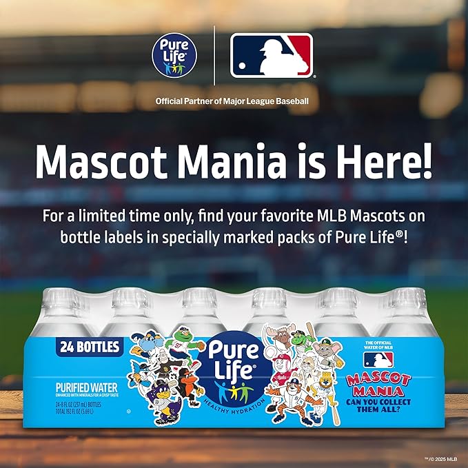 - Mascot Mania is Here: Baseball is back and Pure Life is teaming up with MLB to bring Mascot Mania to fans across the country! Find your favorite MLB Mascots on bottle labels in specially marked packs of Pure Life. Collect them all!